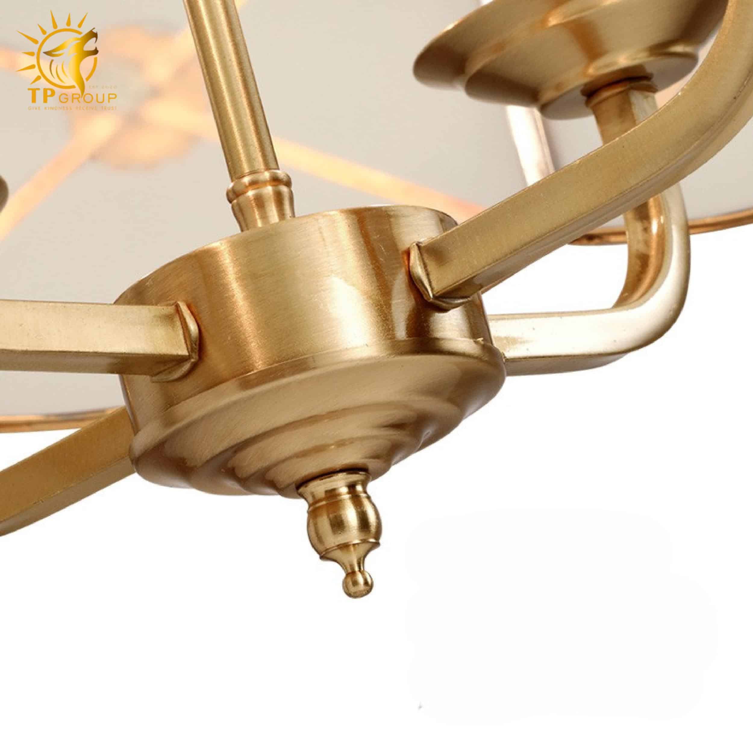 • Chất liệu bền bỉ: Khung đèn làm từ đồng thau mạ vàng, chống gỉ sét, giữ được độ sáng bóng lâu dài.