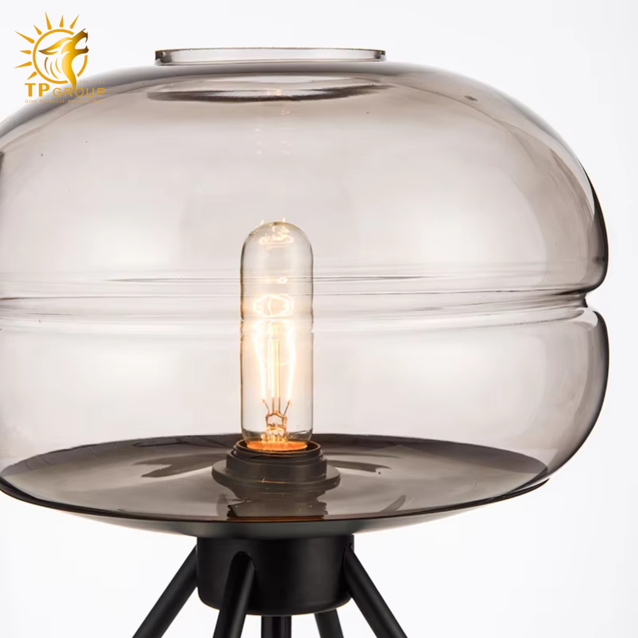 Bóng đèn dạng filament cổ điển bên trong kết hợp cùng thủy tinh màu trà nhẹ tạo nên ánh sáng vàng ấm áp, giúp không gian thêm phần gần gũi và sang trọng. Phù hợp với phòng khách, góc đọc sách, phòng ngủ hoặc studio phong cách tối giản – hiện đại.