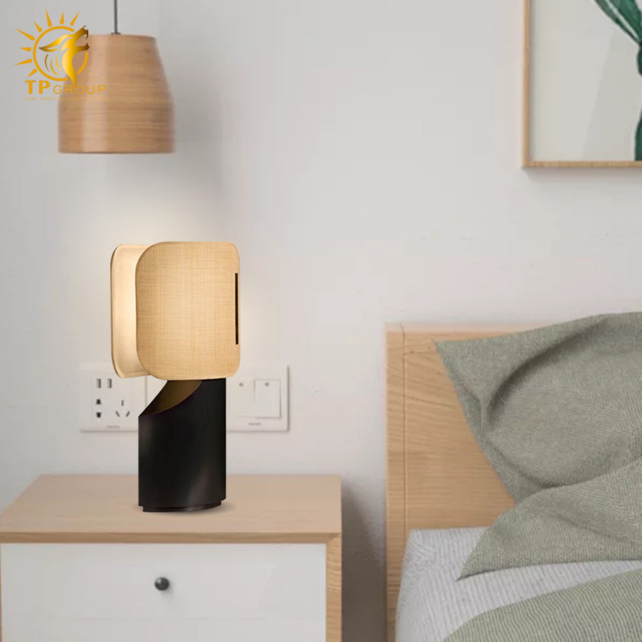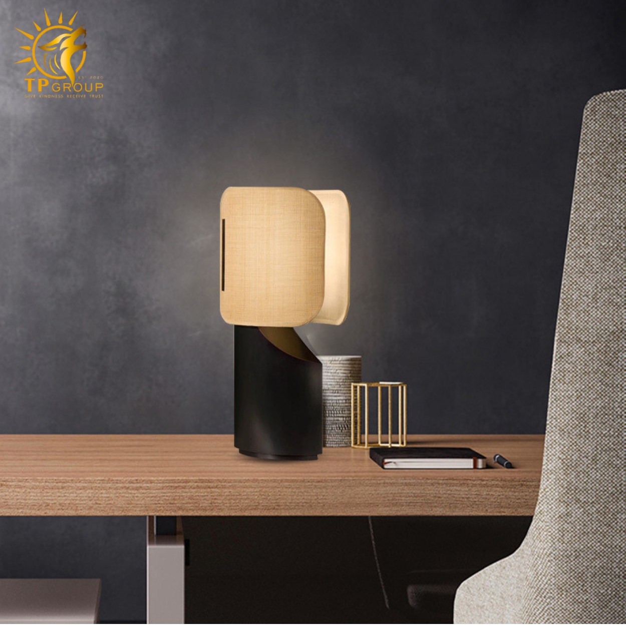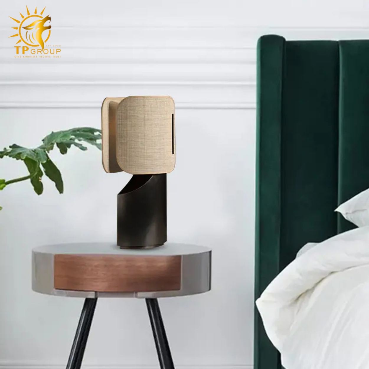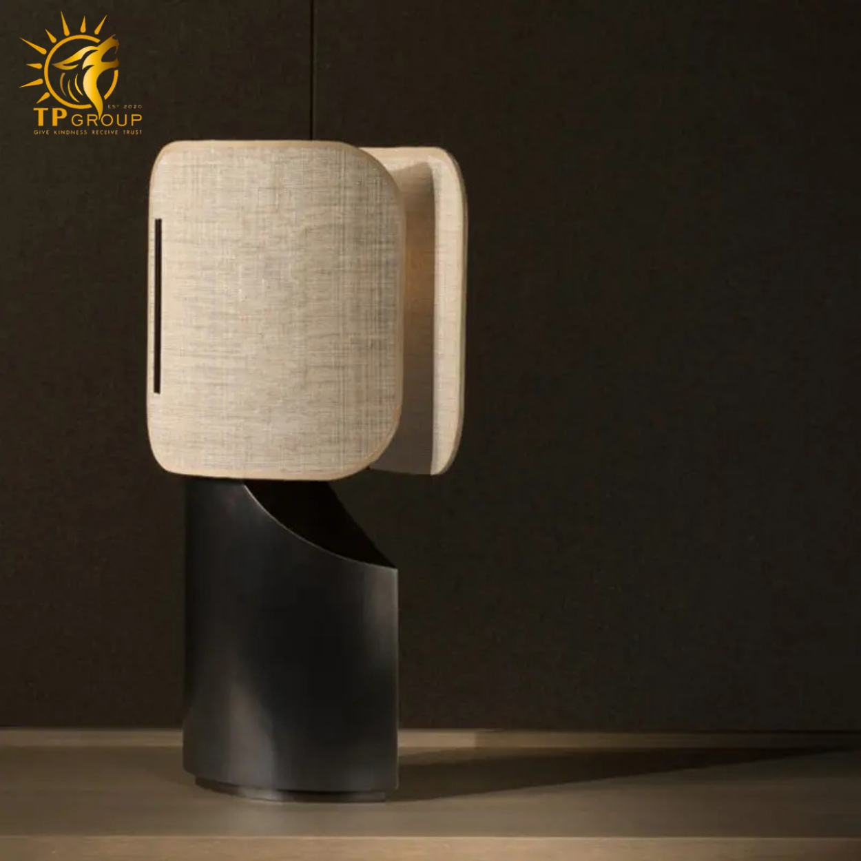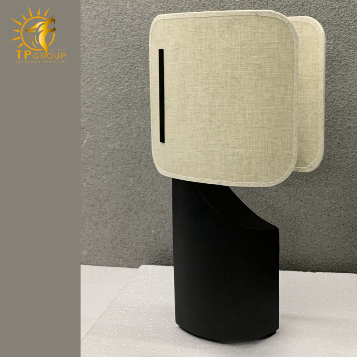 Khác biệt với những mẫu đèn truyền thống, mẫu đèn để bàn này gây ấn tượng bởi hình khối uốn cong đầy sáng tạo. Sự kết hợp giữa thân đèn màu đen huyền và chụp đèn bo góc phủ vải linen cao cấp tạo nên tổng thể vừa hiện đại, vừa mang chiều sâu nghệ thuật.