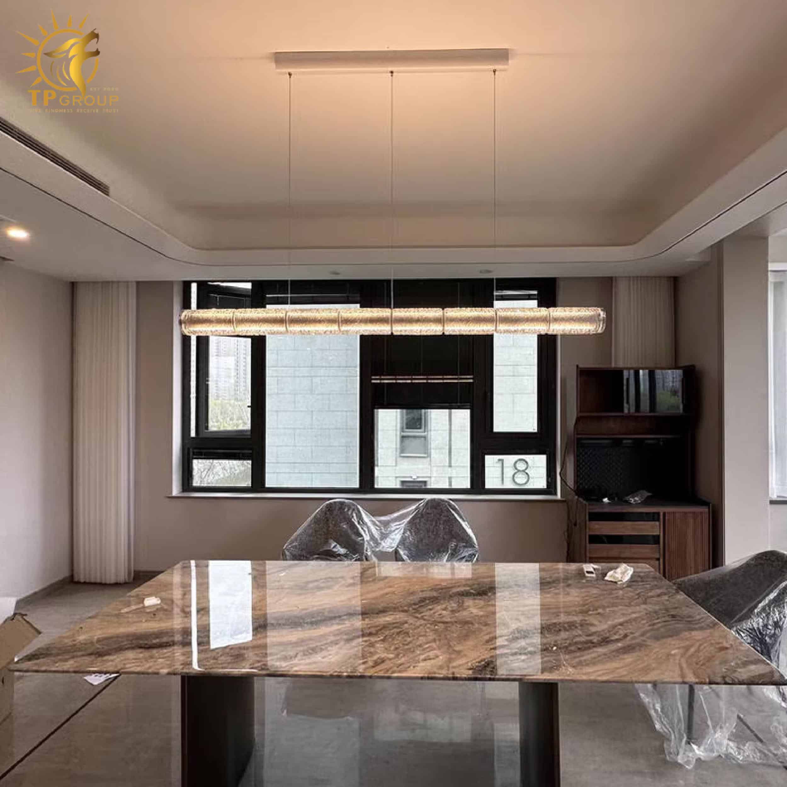 • Thủy tinh trong suốt cao cấp, tạo ánh sáng trong trẻo, nhẹ nhàng mà vẫn đầy ấn tượng.