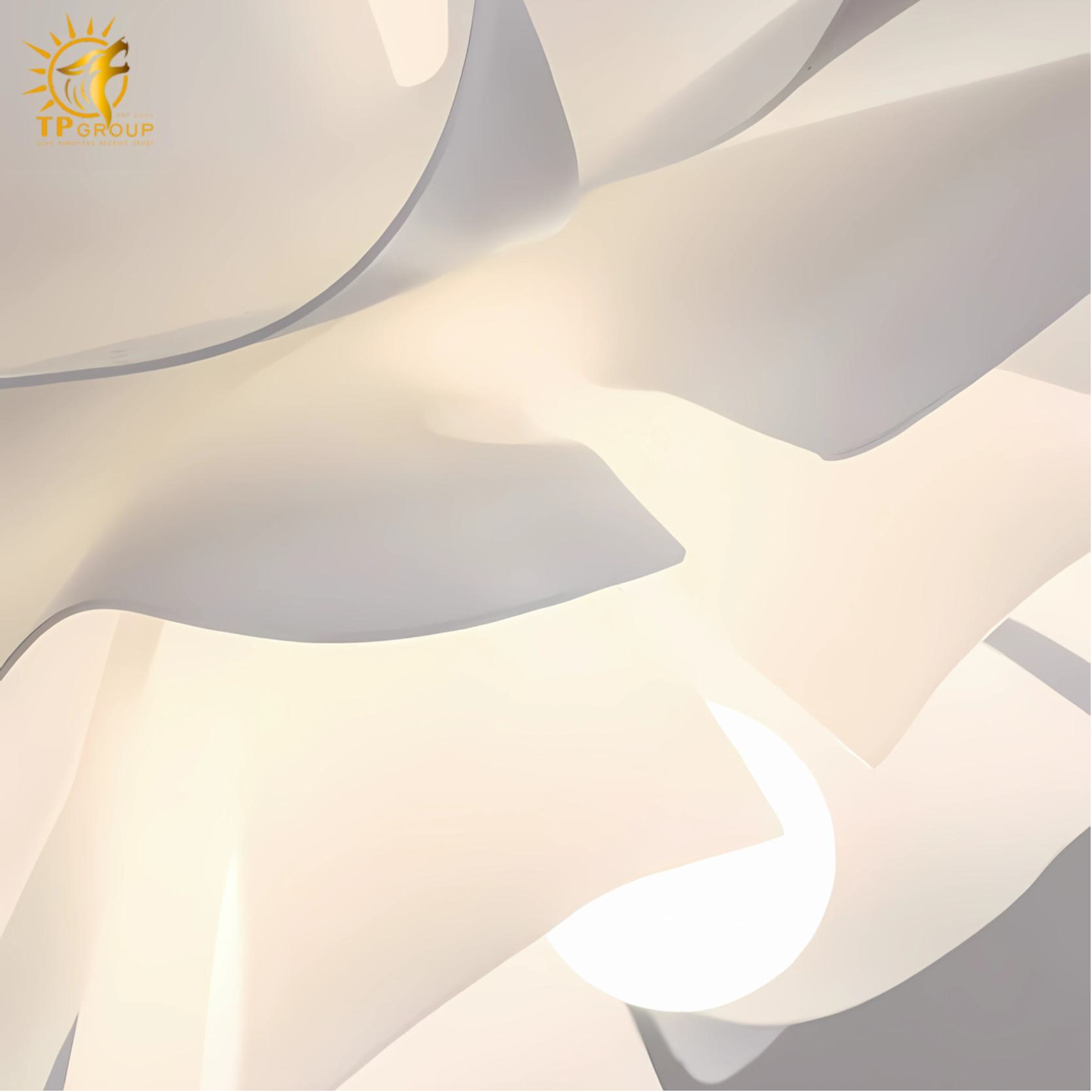 - Chất liệu ABS cao cấp – bền nhẹ, an toàn: Nhựa ABS giúp chao đèn giữ được hình dáng tinh tế, nhẹ nhàng khi treo trần, không gây áp lực cho hệ trần thạch cao hoặc trần bê tông mỏng.