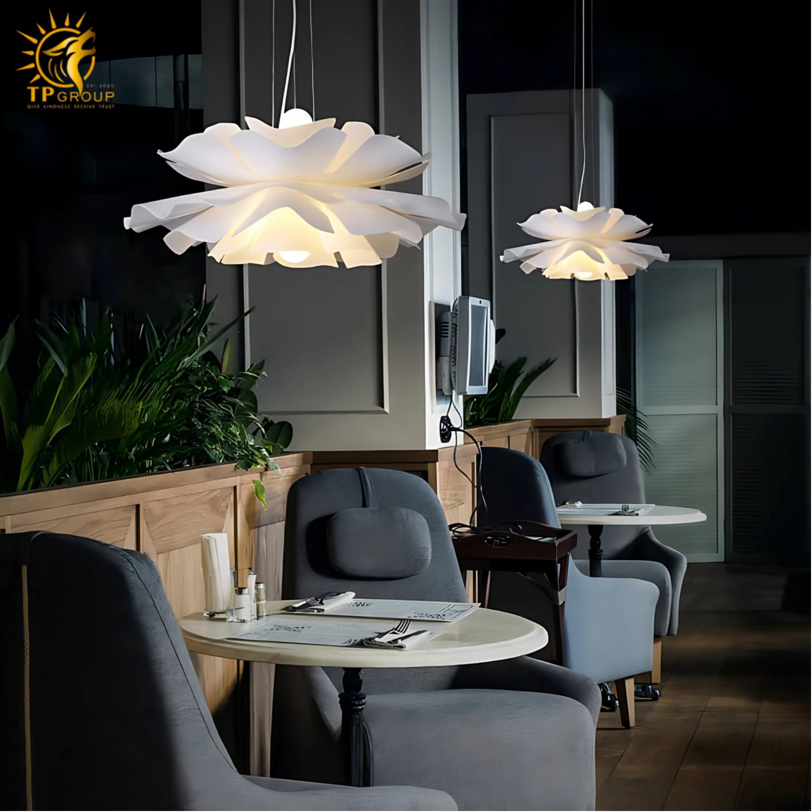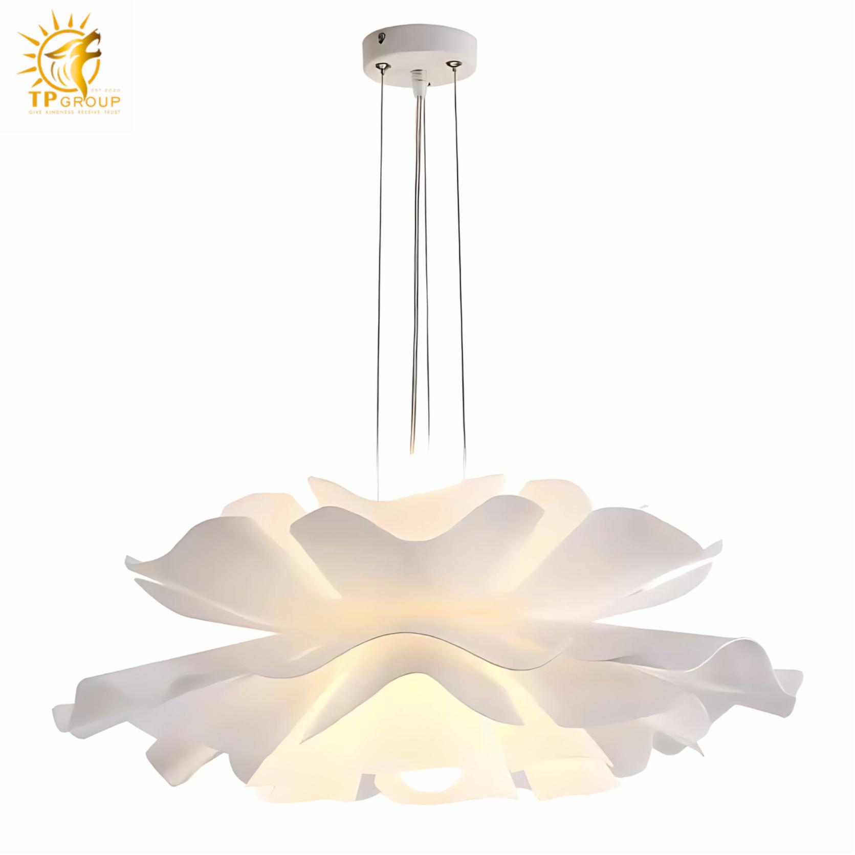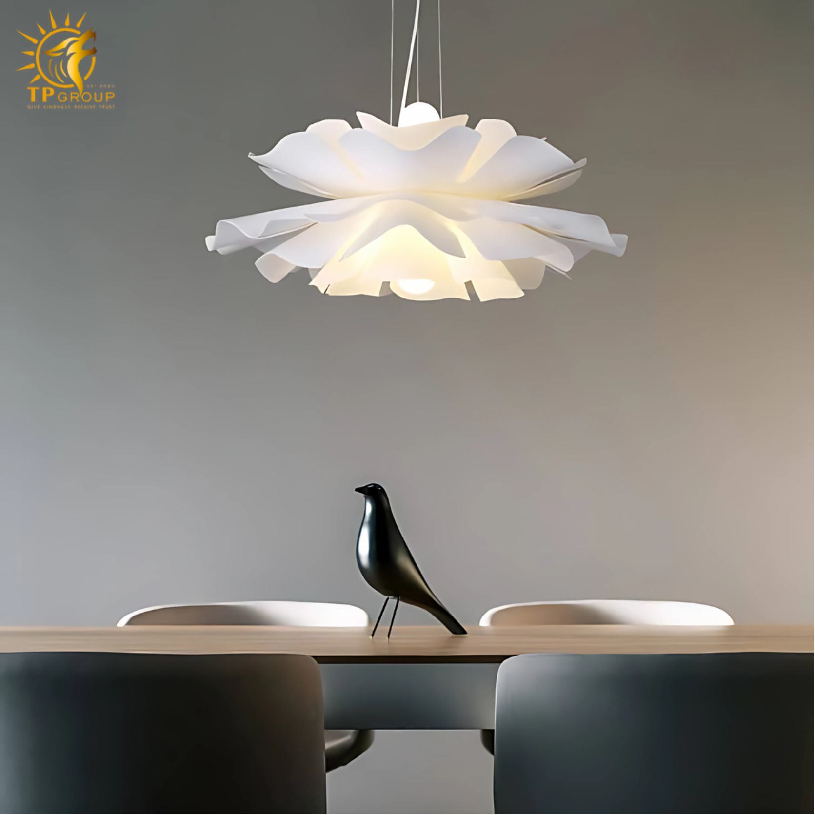 - Đèn thả trần hình hoa bằng nhựa ABS XL8013 là mẫu đèn trang trí nghệ thuật mang đậm tinh thần Scandinavian – Bắc Âu hiện đại, được chế tác từ nhựa ABS cao cấp với công nghệ tạo hình tiên tiến. Phần chao đèn mô phỏng một bông hoa đang bung nở, mềm mại nhưng vẫn giữ được cấu trúc hình học sắc nét và ấn tượng.