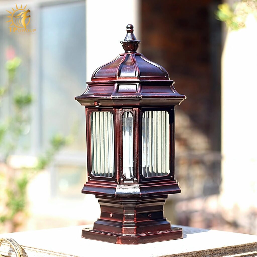 Kiểu dáng trụ đèn chắc chắn, phù hợp đặt trên các trụ cổng, bệ tường, lối đi sân vườn.