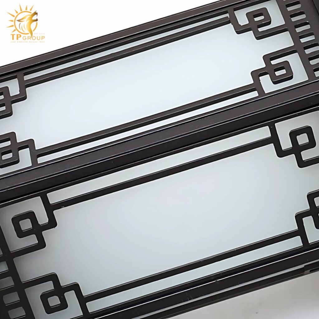 • Hoa văn sắc sảo được chạm khắc tinh tế trên thân đèn, mô phỏng phong cách kiến trúc Á Đông cổ kính.