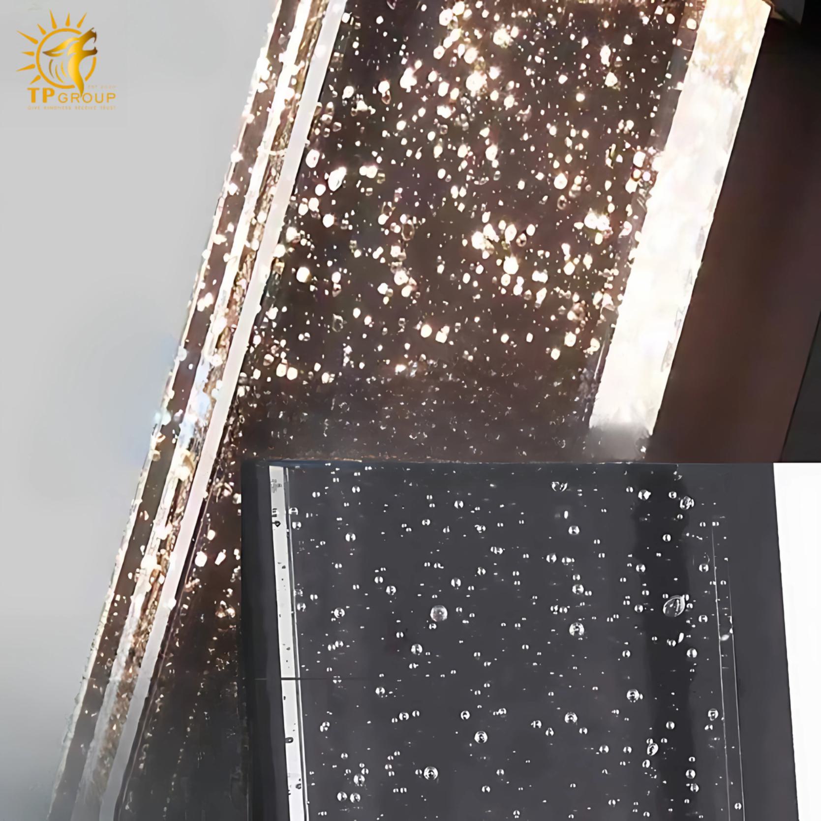- Thân đèn trang trí bọt khí lấp lánh: Chất liệu trong suốt kết hợp với hiệu ứng ánh sáng LED tạo cảm giác như ánh sáng đang “nổ tung” trong đèn – vô cùng bắt mắt.