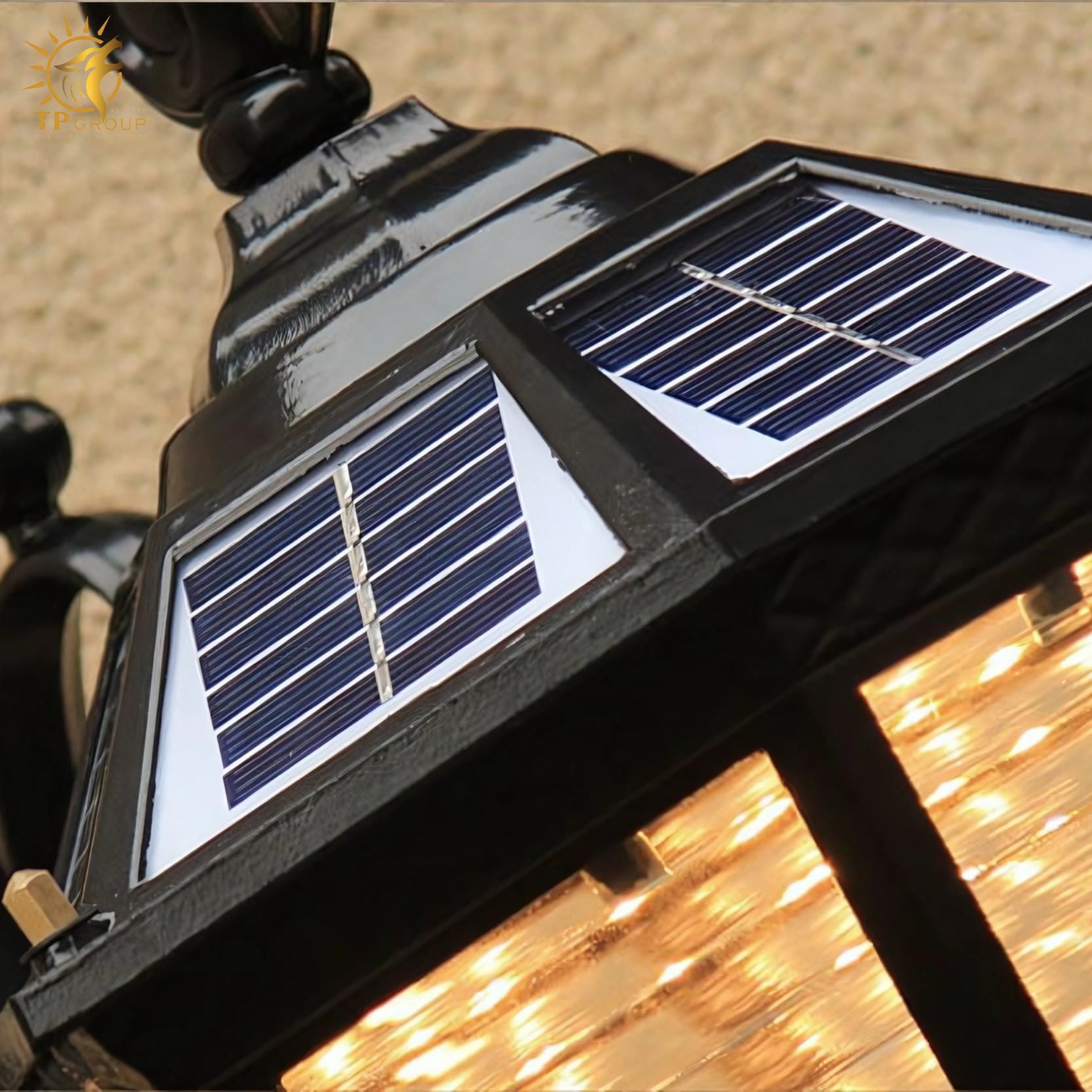 Trang bị tấm pin năng lượng mặt trời hiệu suất cao, hấp thụ ánh sáng ban ngày, tự động chiếu sáng vào ban đêm.