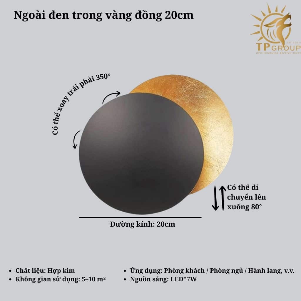 Đèn được cấu tạo bởi hai vòng tròn giao thoa – một mặt ngoài đen nhám, một mặt trong ánh vàng đồng sang trọng. Khi thắp sáng, ánh sáng phản chiếu mềm mại, tạo hiệu ứng như một vầng trăng huyền ảo, vừa ấm áp vừa lãng mạn.
